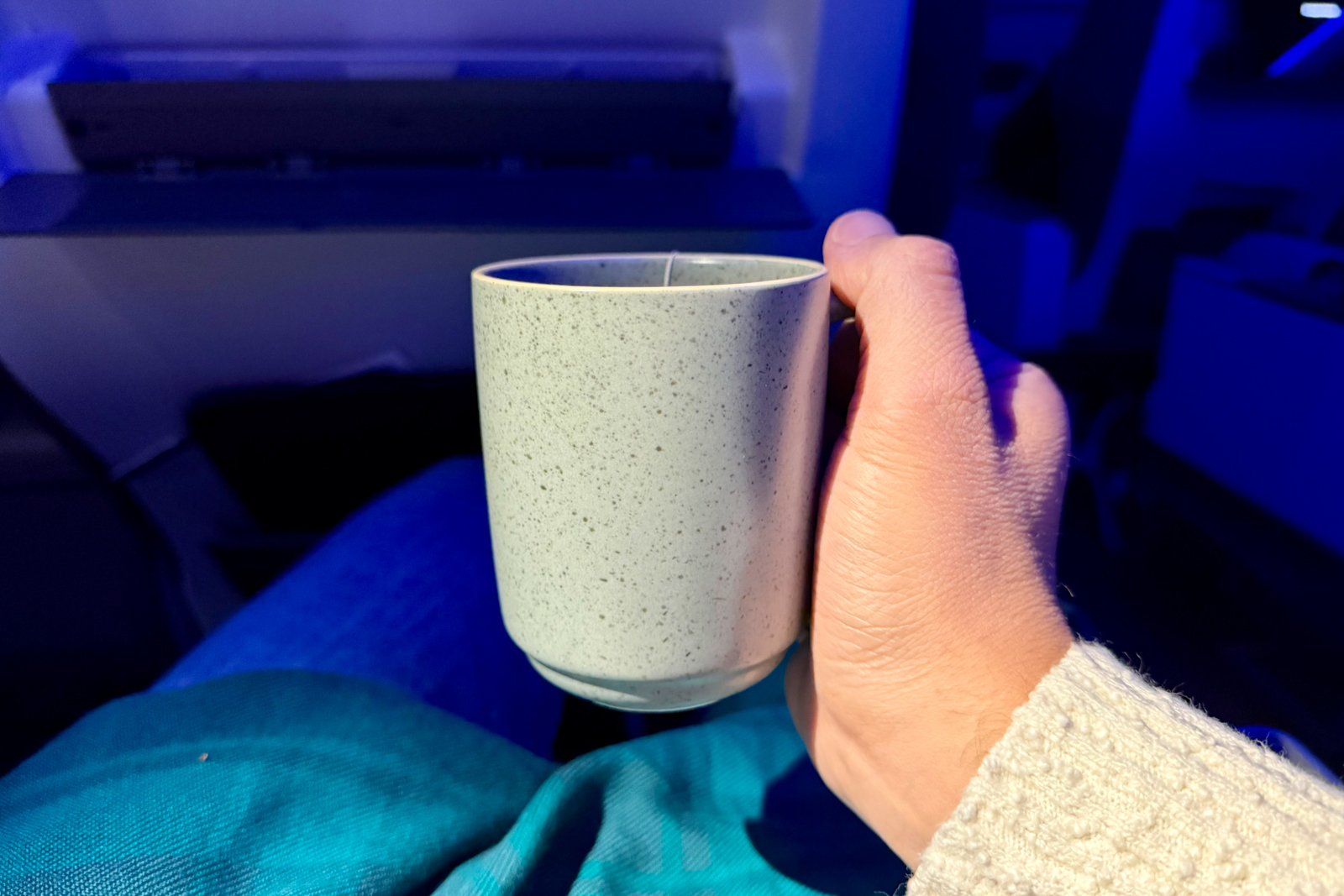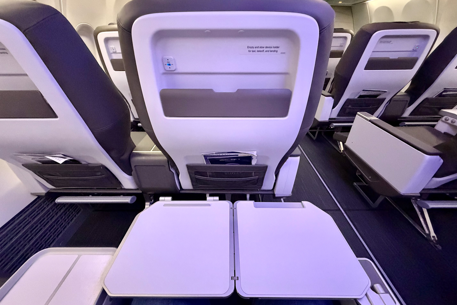 Another tech downside is that Alaska doesn’t offer inflight entertainment screens. You can stream movies and TV shows to your personal device — and there are two personal device stands in first class — but there’s no built-in screen.