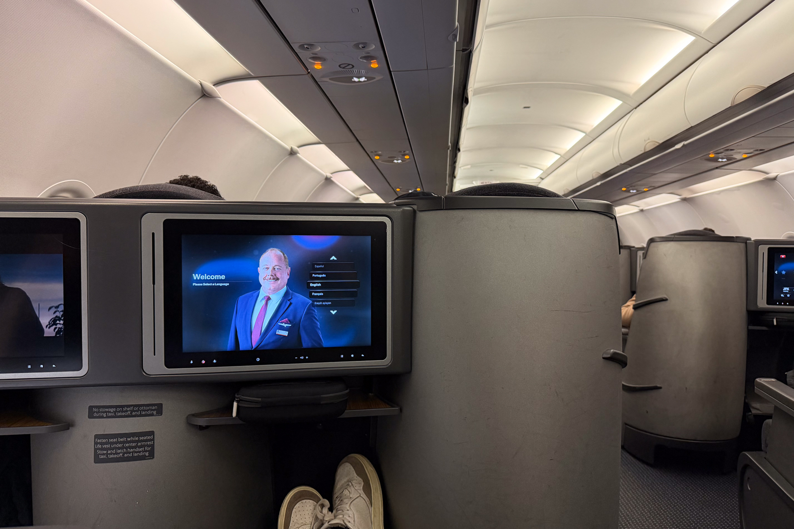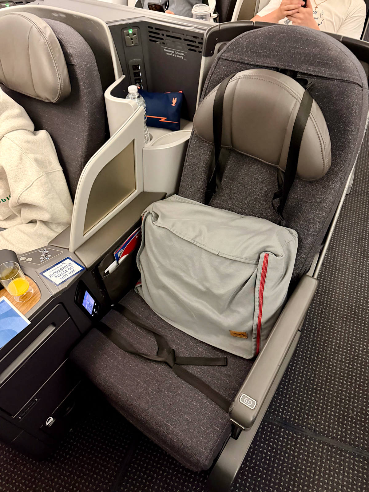 Instead, my originally selected seat — bulkhead 6D, which I chose for the larger footwell — was inoperable because of broken seat controls. I was moved back to 10C.