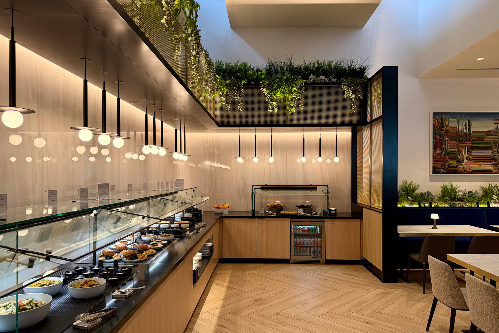 From a design perspective, it looks just like the rest of the network. It’s got a beautiful design, a variety of seating options, and inviting colors that make it feel like a luxe oasis from the busy terminal (especially the dated Terminal C).