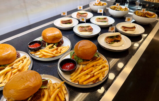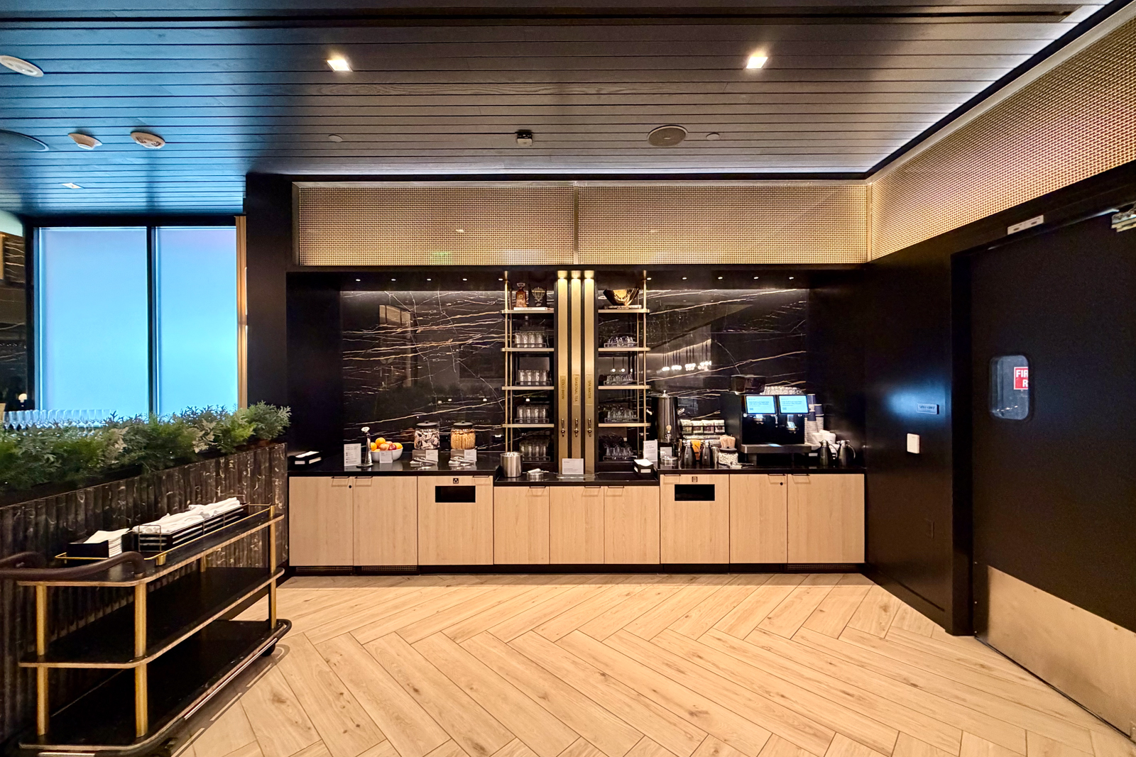 There’s also a large drink station flanking one end of the buffet, where you’ll find Eversys coffee machines and other nonalcoholic pours.