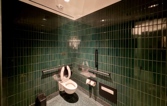 You’ll find gender-specific restrooms (with just two stalls and one urinal on the men’s side), as well as a single all-gender restroom.