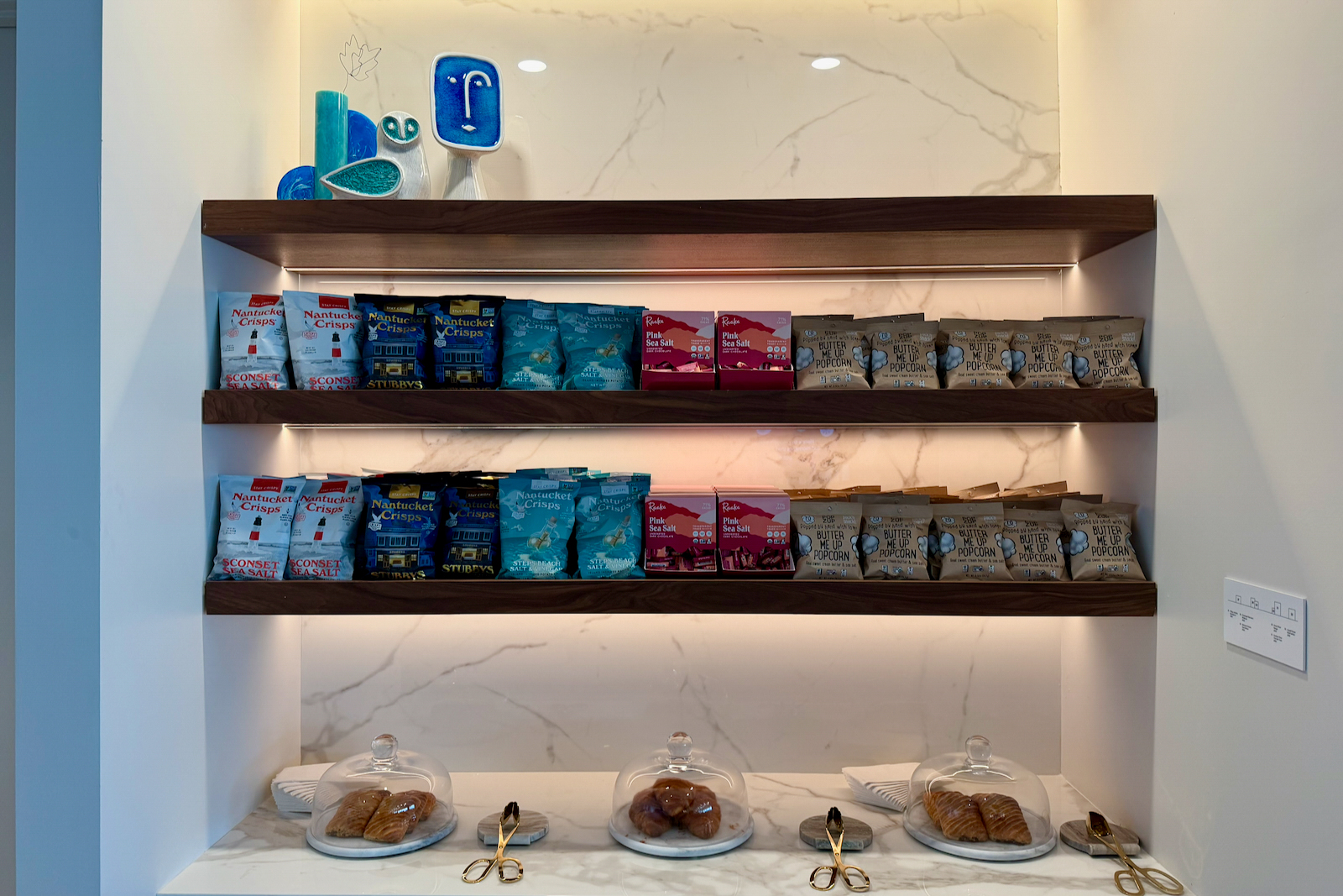 One bright spot: the variety of (trendy) packaged snacks. Think Popzup popcorn, Raaka chocolates, and Nantucket Crisps.
