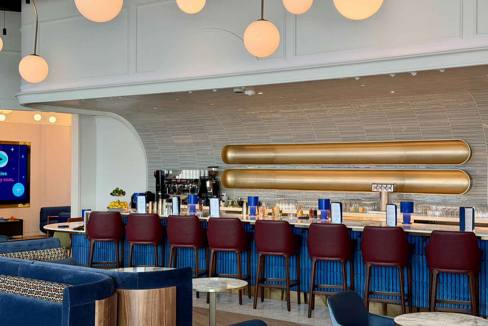 From its New York–inspired design to its two-story layout and bold color palette, the lounge feels distinctly JetBlue while offering a cozy retreat from the chaos of Terminal 5.