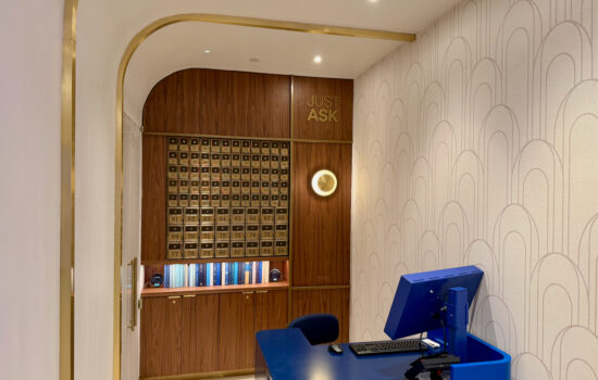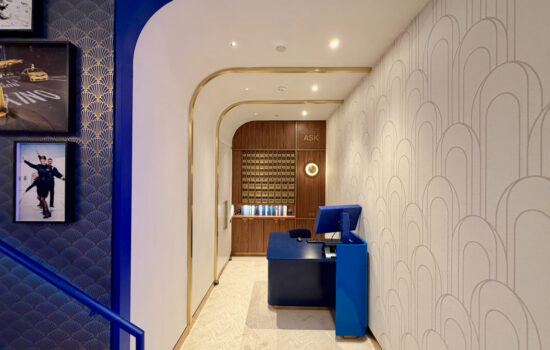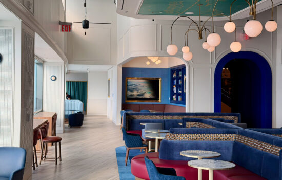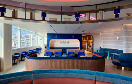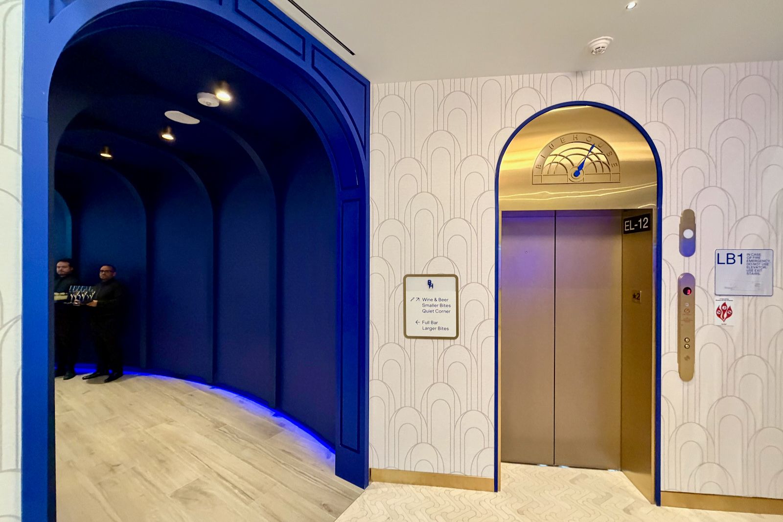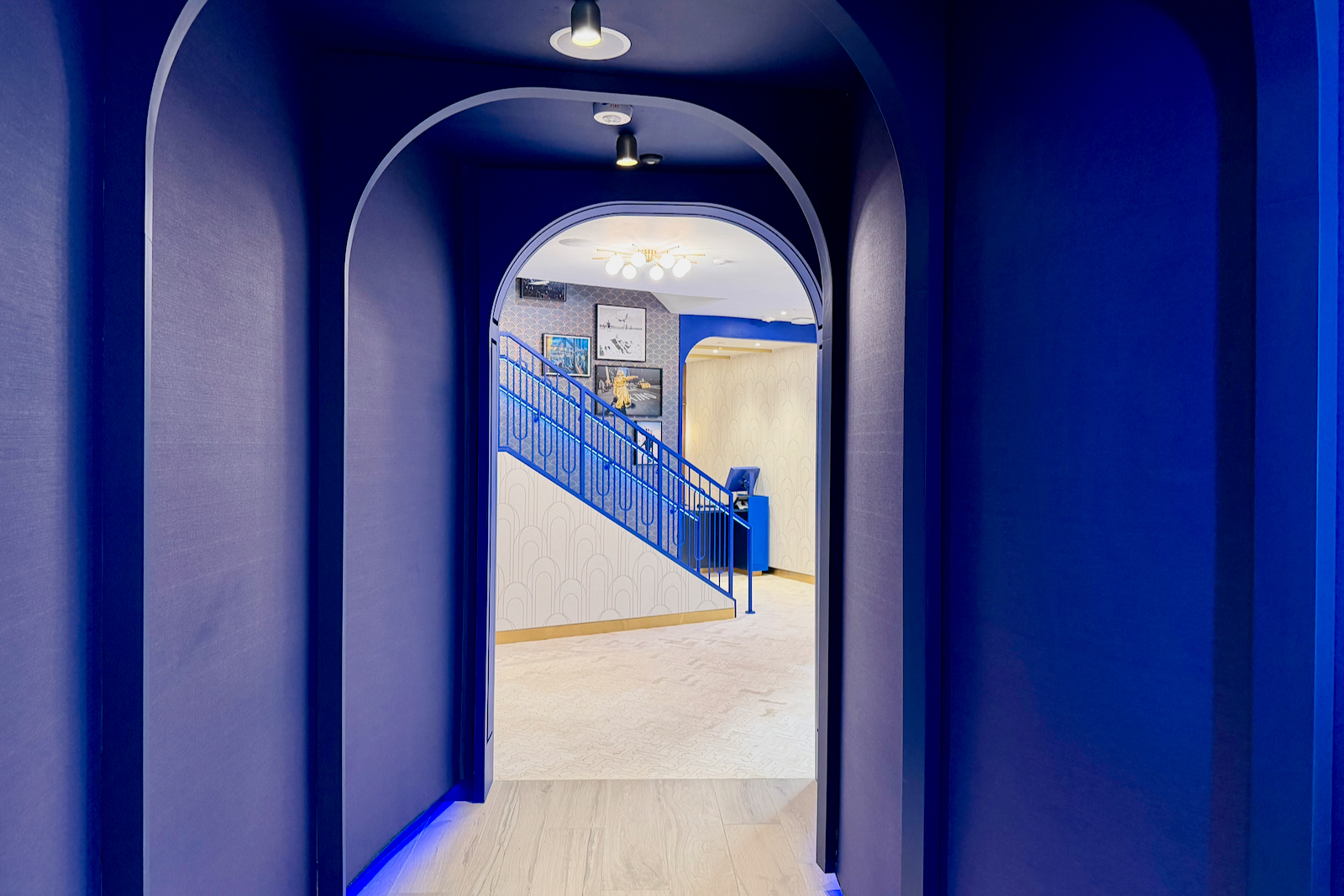 As you enter the main lounge area, you’ll pass through blue arches (a recurring design theme feature).
