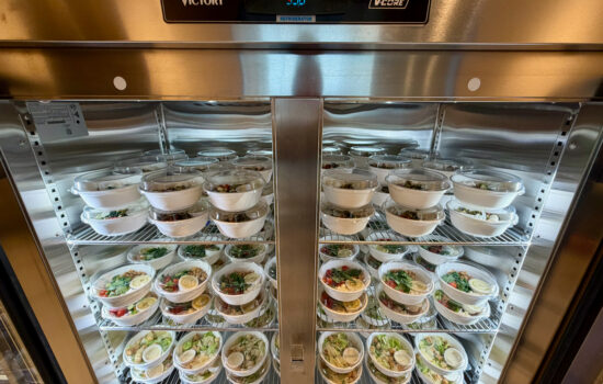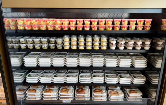 Everything is prepared daily, but because BlueHouse currently lacks a kitchen, dishes are catered in grab-and-go containers. Options include yogurt parfaits, fruit cups, salads, and wraps, but there’s no full buffet.