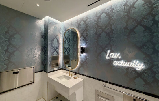 I loved the bathroom design — it might not’ve felt as luxe as a Delta Sky Club (which wants to look like a Four Seasons lobby), but they felt distinctly JetBlue. Especially the cute pithy sayings referencing the “lav.”