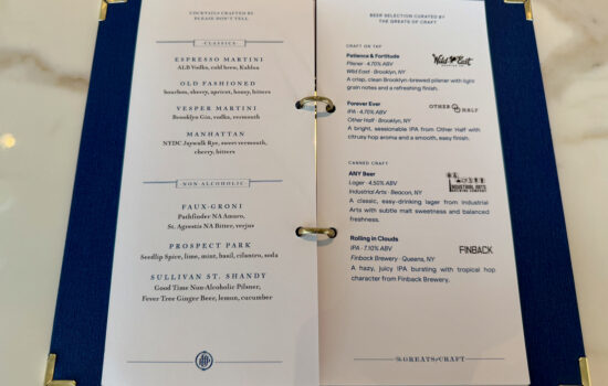 The beverage program is curated by Please Don’t Tell and The Greats of Craft, some of NYC’s most prominent names in drinks.