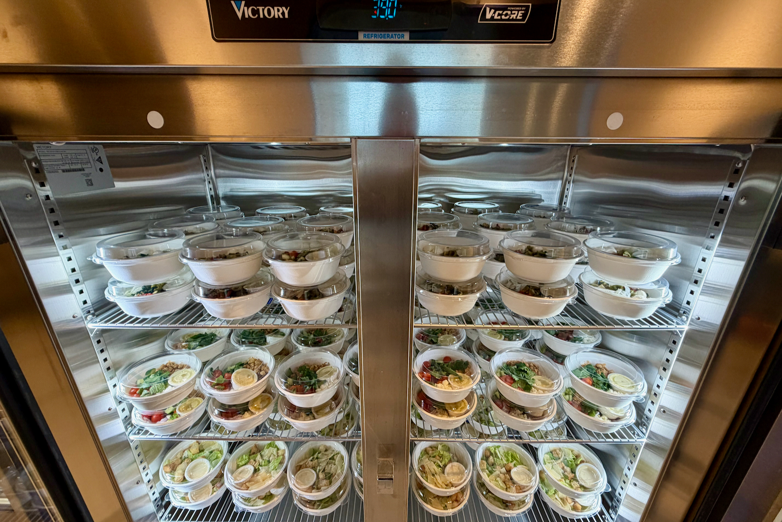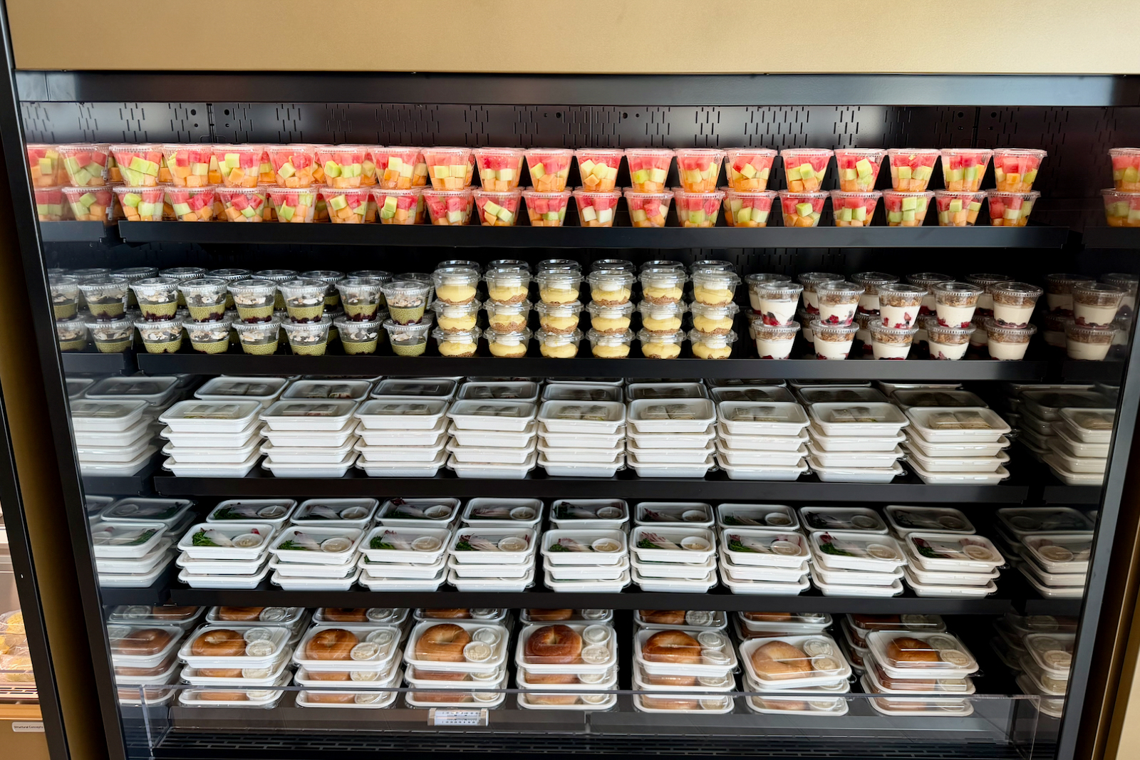 Everything is prepared daily, but because BlueHouse currently lacks a kitchen, dishes are catered in grab-and-go containers. Options include yogurt parfaits, fruit cups, salads, and wraps, but there’s no full buffet.