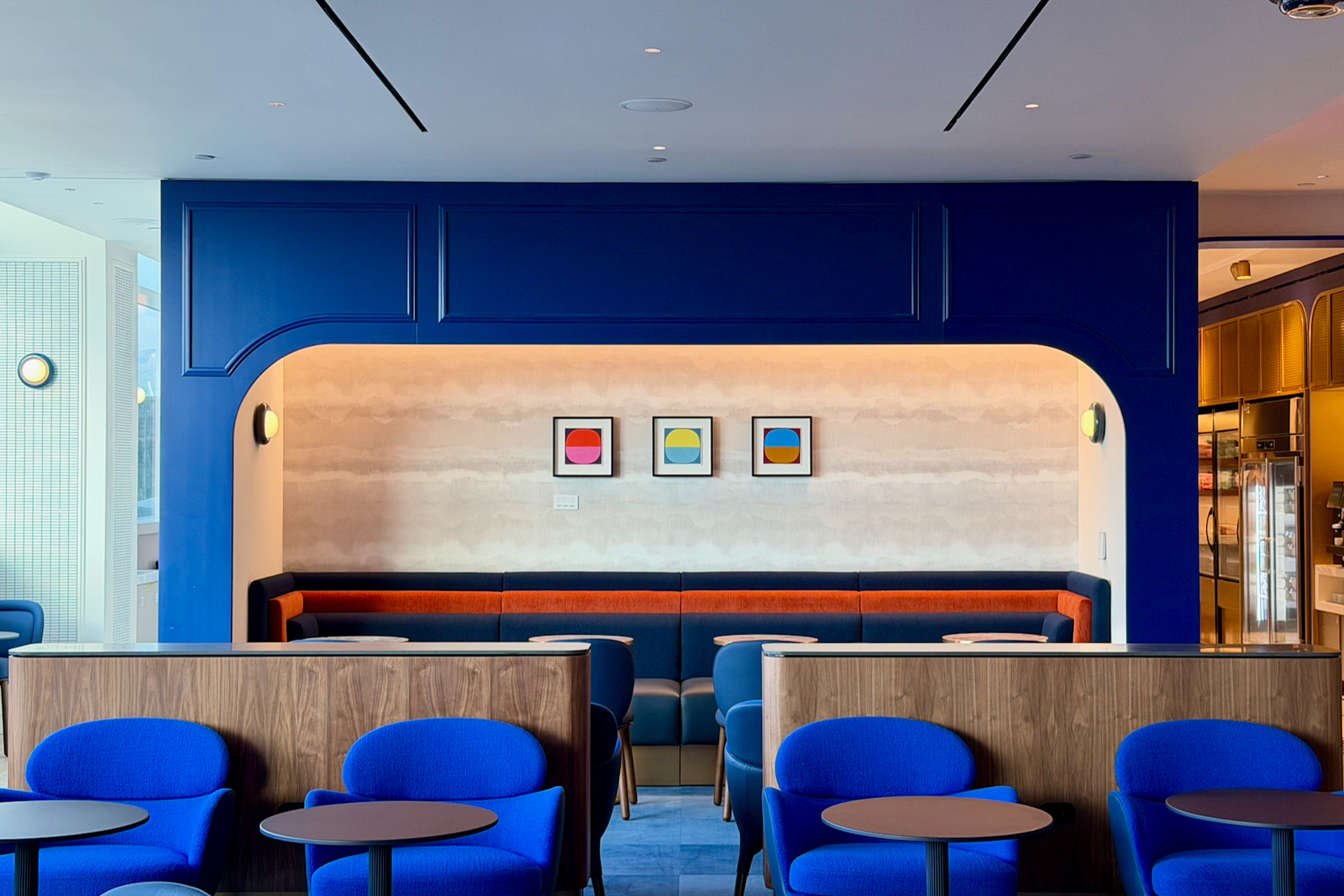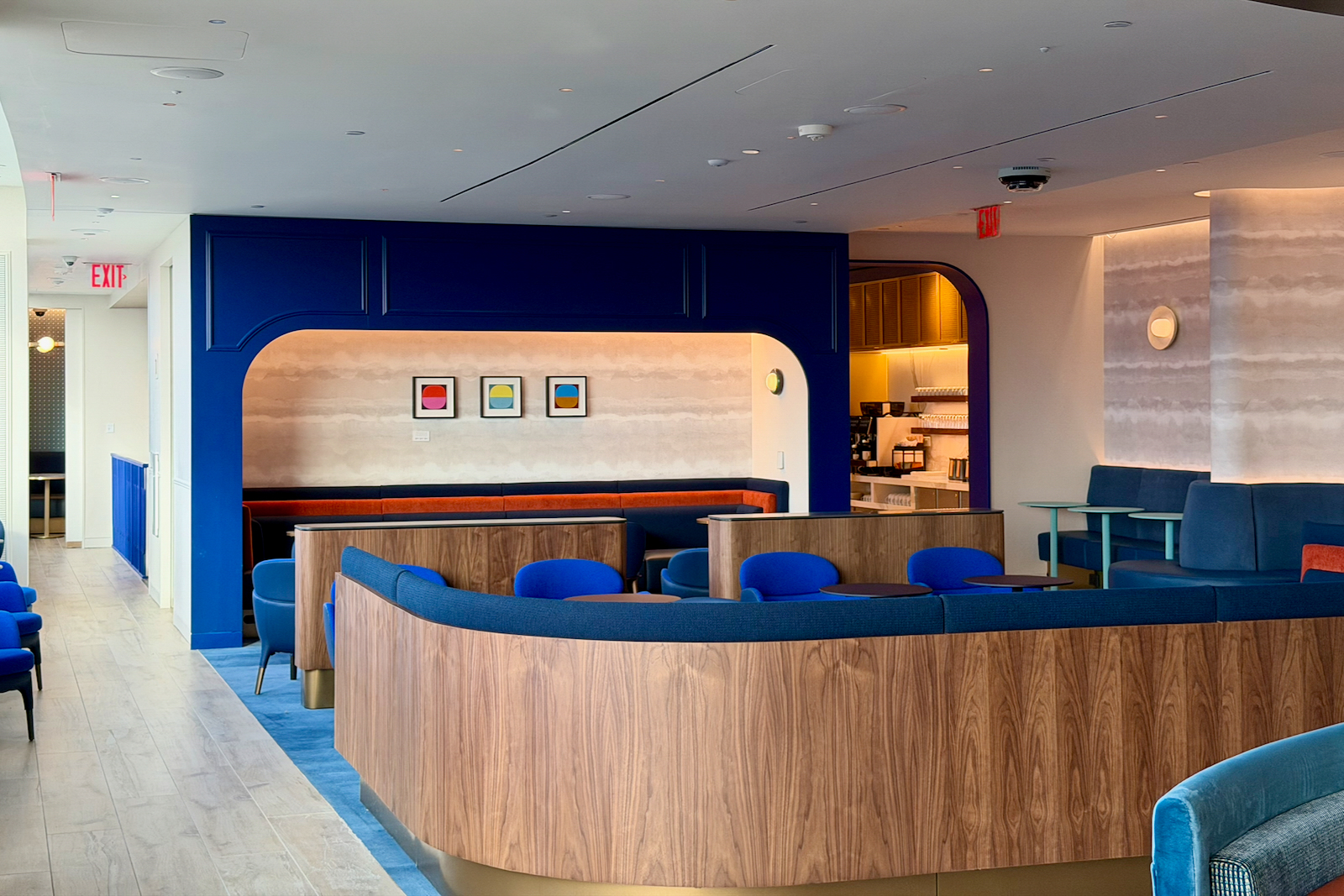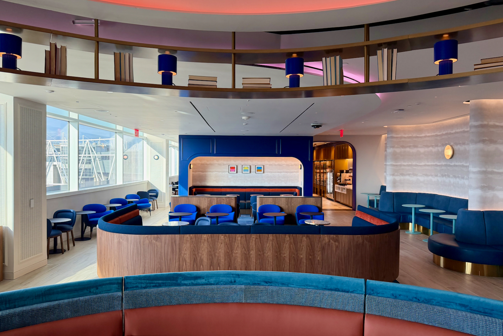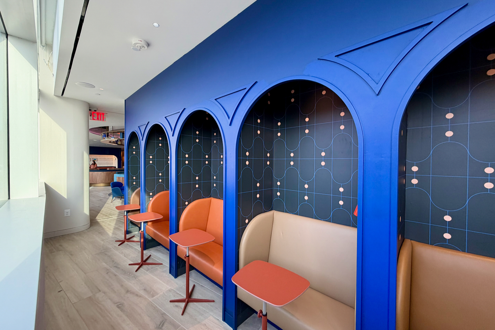 As you enter the main lounge area, you’ll pass through blue arches (a recurring design theme feature).