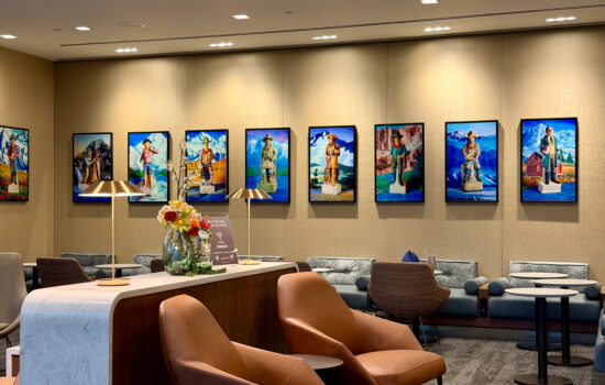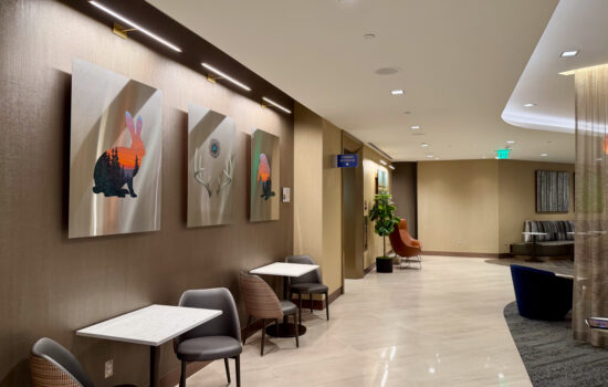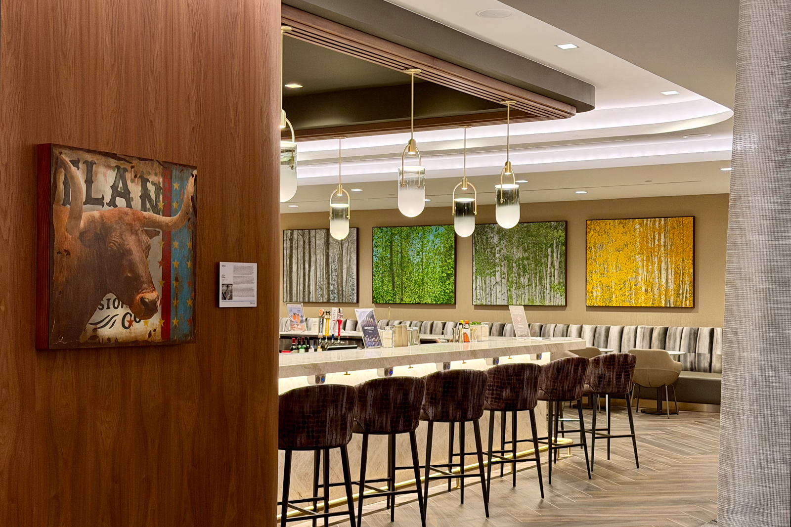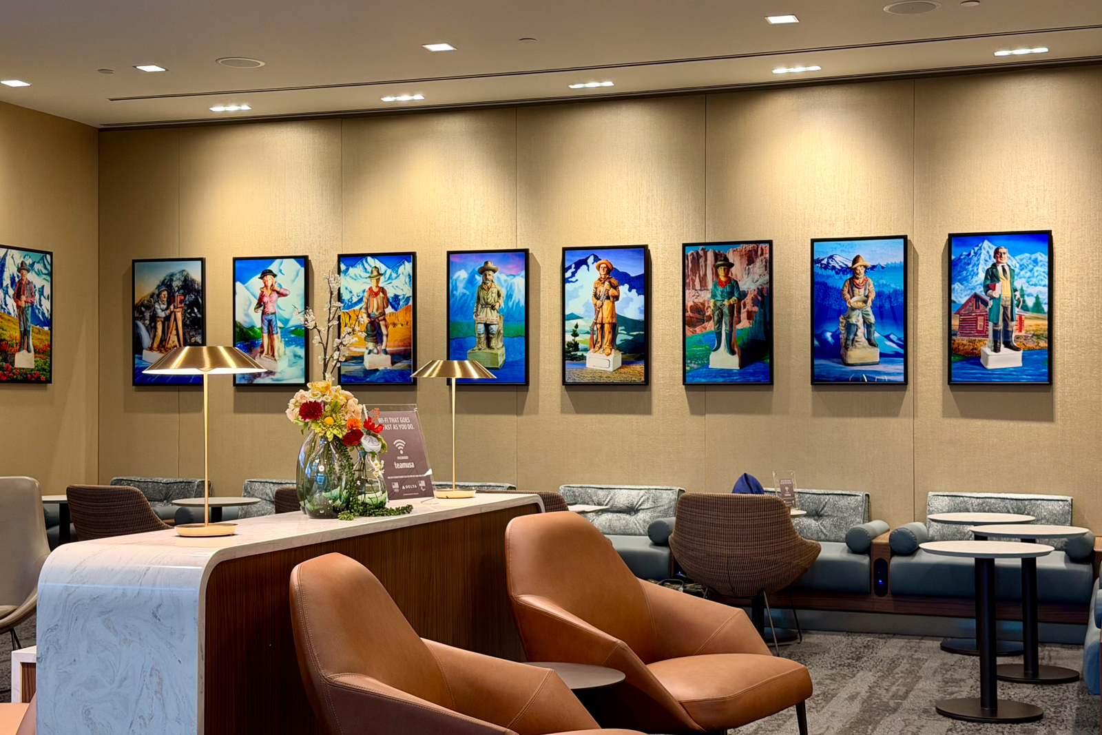 Delta’s art program shines here. The airline commissioned eight local artists, and several pieces draw inspiration from the Rocky Mountains.