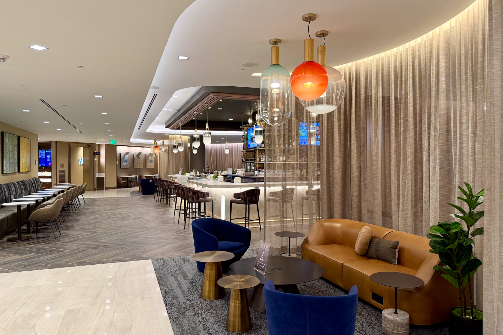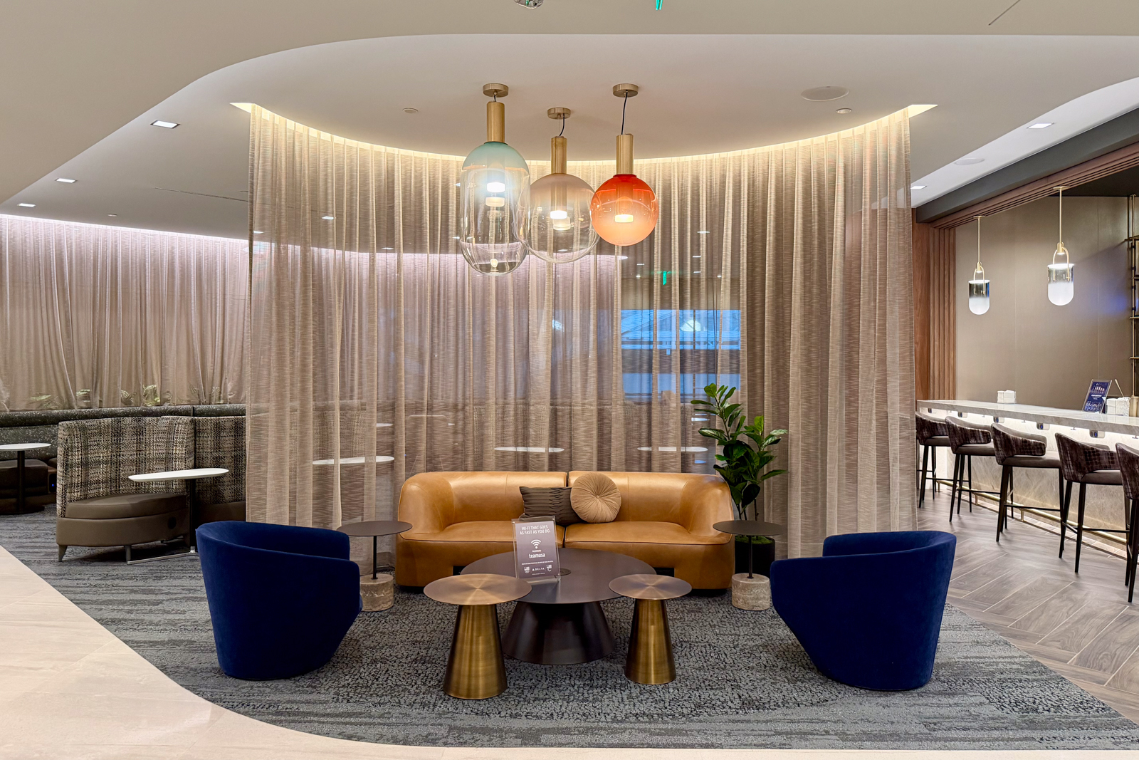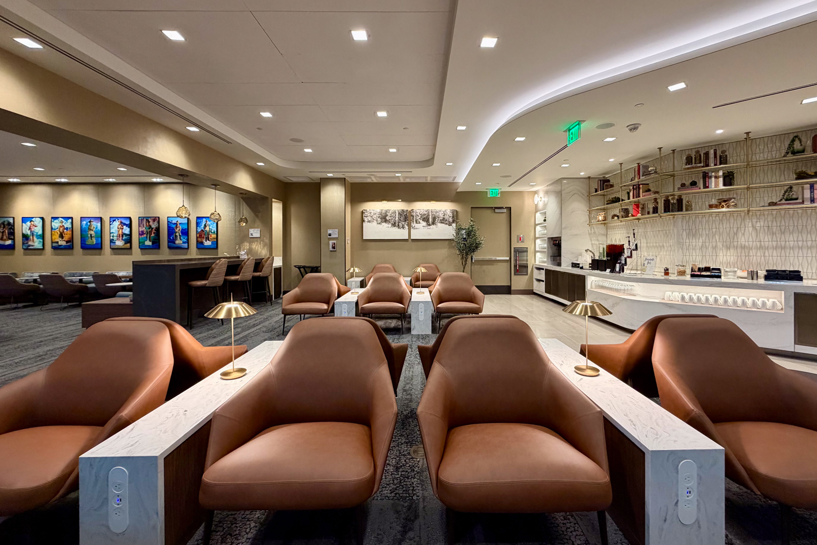 There are power outlets, USB-A, and USB-C ports at basically every seat. Fast and free Wi-Fi is also available throughout the lounge.