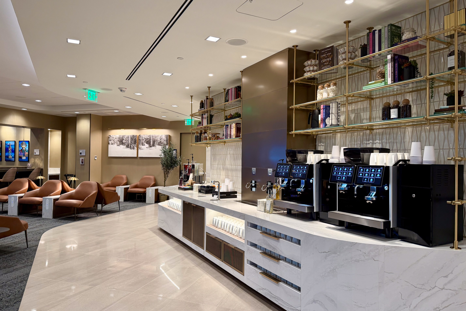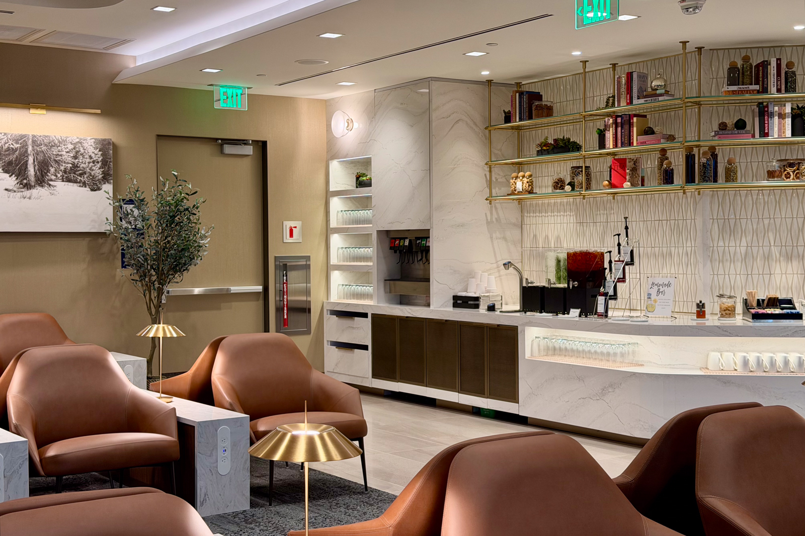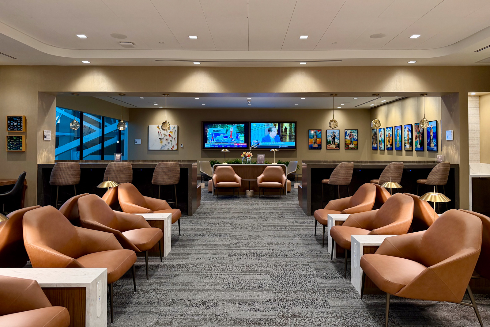 There are power outlets, USB-A, and USB-C ports at basically every seat. Fast and free Wi-Fi is also available throughout the lounge.