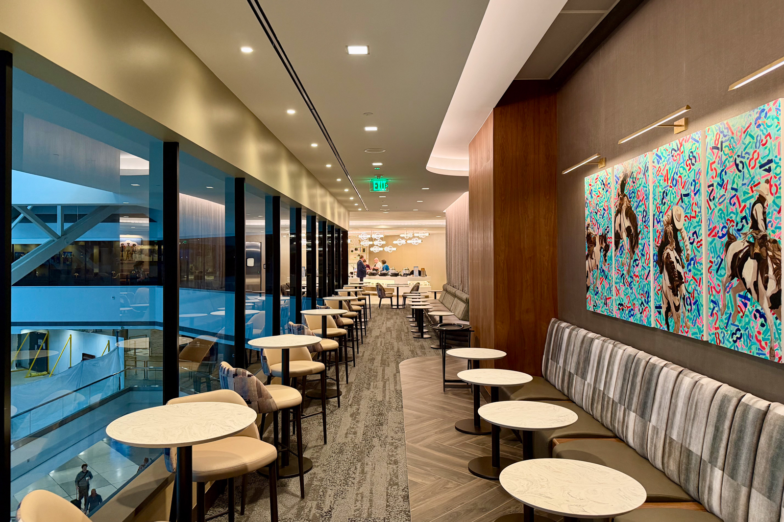 Delta’s art program shines here. The airline commissioned eight local artists, and several pieces draw inspiration from the Rocky Mountains.