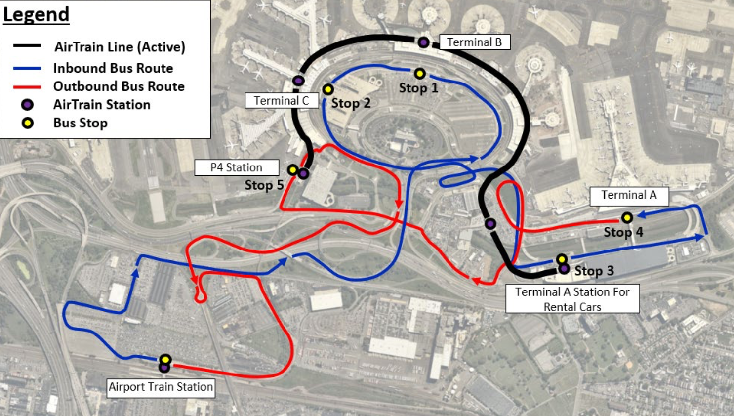 During the weekday shutdown periods, the Port Authority will operate a bus network to replace the affected AirTrain segment.