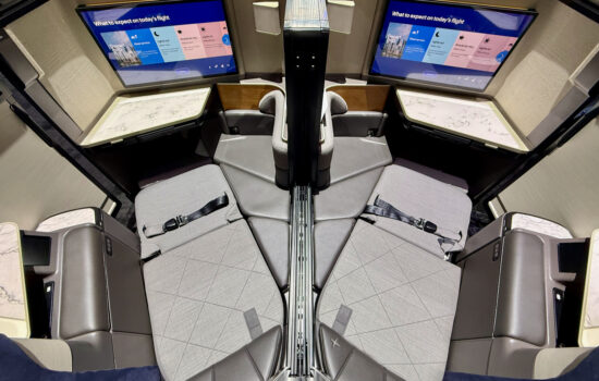 There are 16 rows of Polaris seats in a 1-2-1 configuration, giving every passenger direct aisle access. This jet will be the first to feature United’s next-generation Polaris product, which — based on the mockups I’ve experienced — represents a meaningful upgrade over today’s seats.