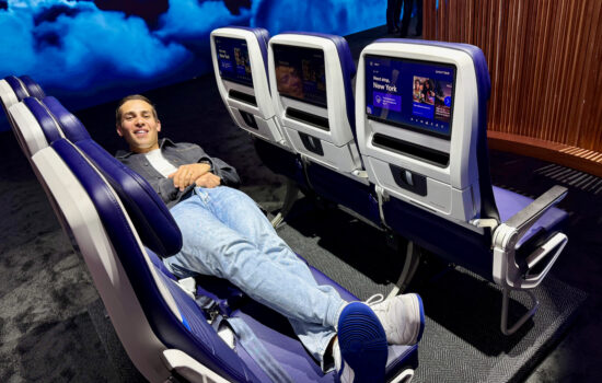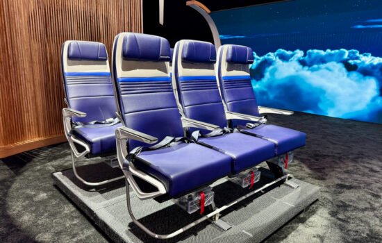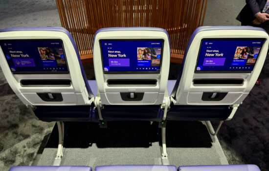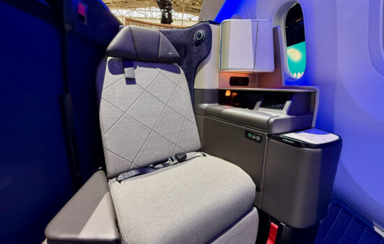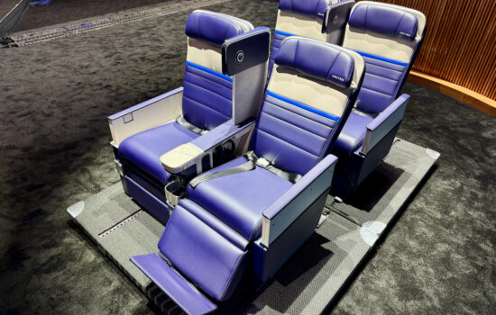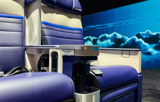 This aircraft will also debut United’s newest Premium Plus recliner, which adds features like privacy dividers, wireless charging, and other design upgrades.